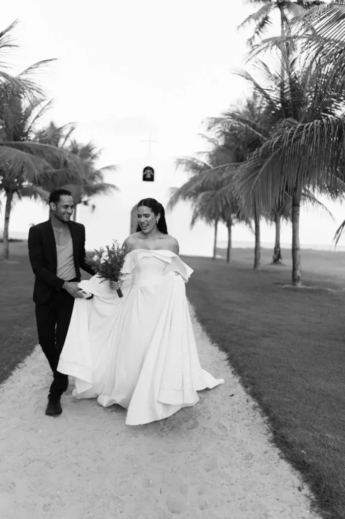 Uma capela à beira-mar, coqueirais infinitos e romance no ar.